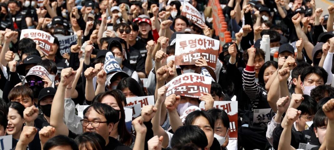 Milhares de funcionários da Samsung Electronics entregaram um ultimato à empresa: ou recebem 15% do lucro anual em forma de bônus ou cruzam os braços a partir de 21 de maio por 18 dias. A mobilização aconteceu na Coreia do Sul e, de acordo com os organizadores, reuniu entre 30 mil e 39 mil trabalhadores.